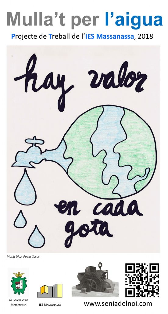 Amb els alumnes hem vist campanyes de sensibilització i conscienciació, fetes per diferents institucions, sobre el malbaratament dels recursos hídrics i sobre les mesures d’estalvi d’aigua que podem aplicar les famílies a casa. També hem pres consciència de com estem contaminant rius, mars i platges amb plàstics i microplàstics. Amb tota aquesta informació hem creat la nostra campanya de sensibilització per omplir l’institut i tot el poble de cartells fets pels alumnes de 2n d’ESO.